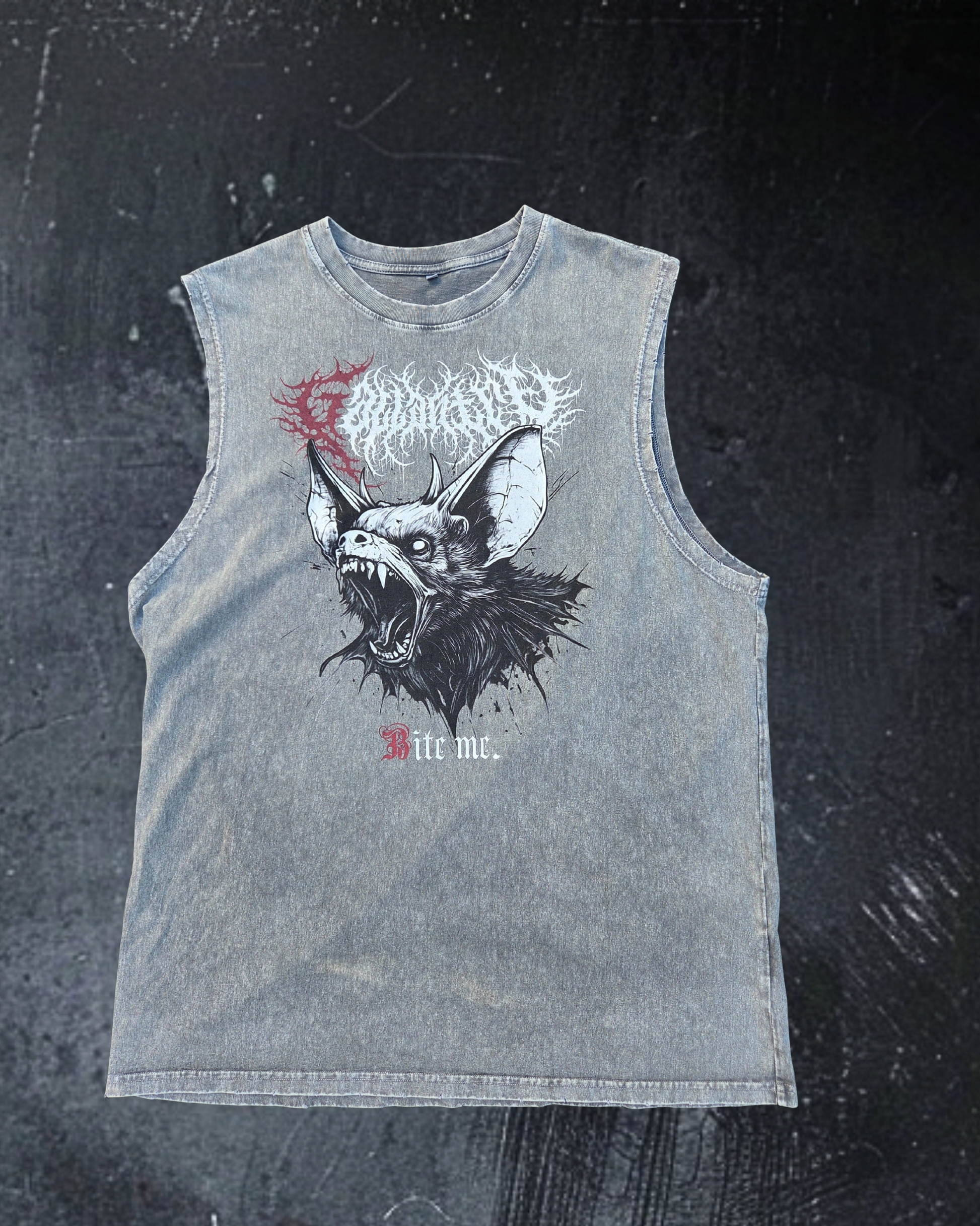 Deathcore vintage wash 'Bite Me' frayed tank